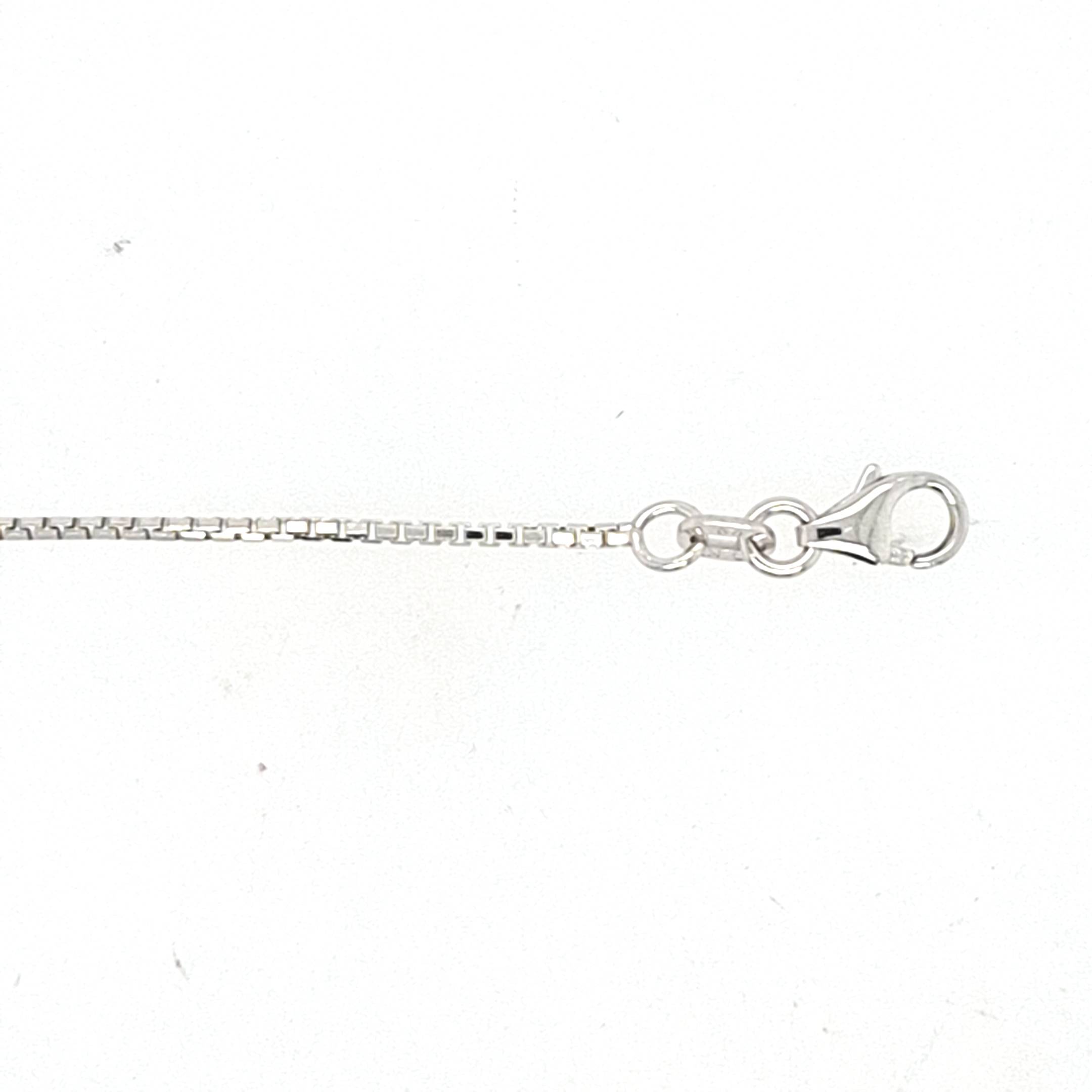 10W white gold 18″ fine 8-sided box link chain with trigger clasp.