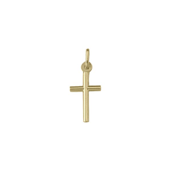 10K yellow gold small (10 x 17mm) tube cross pendant.