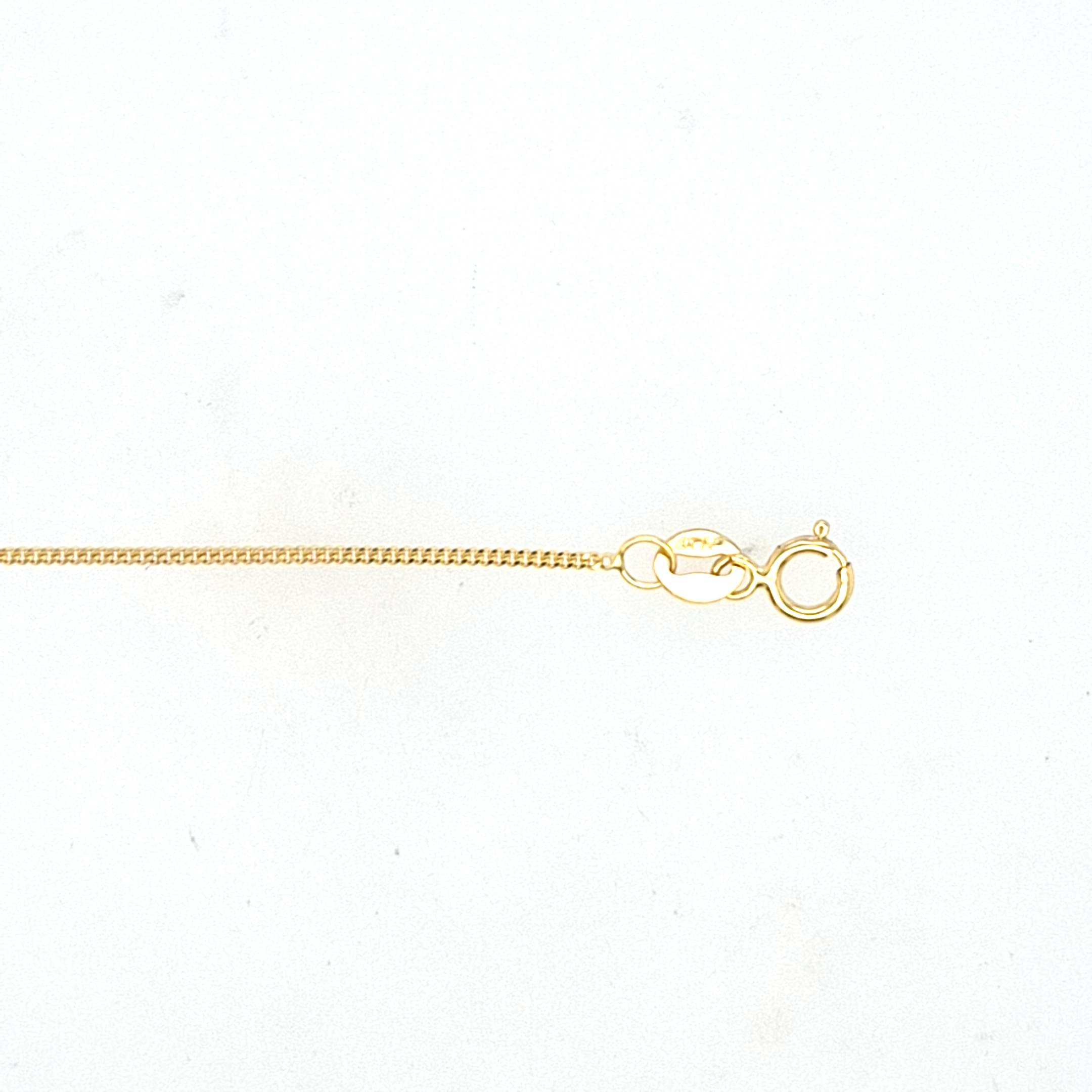 10K yellow gold 18″ fine curb link chain with spring ring clasp.