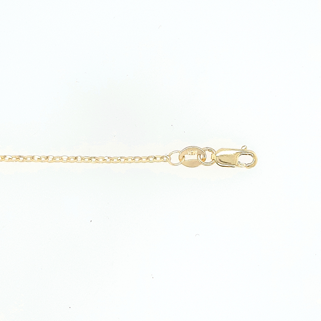 10K yellow gold 18″ double diamond cut Rolo link chain with lobster clasp.