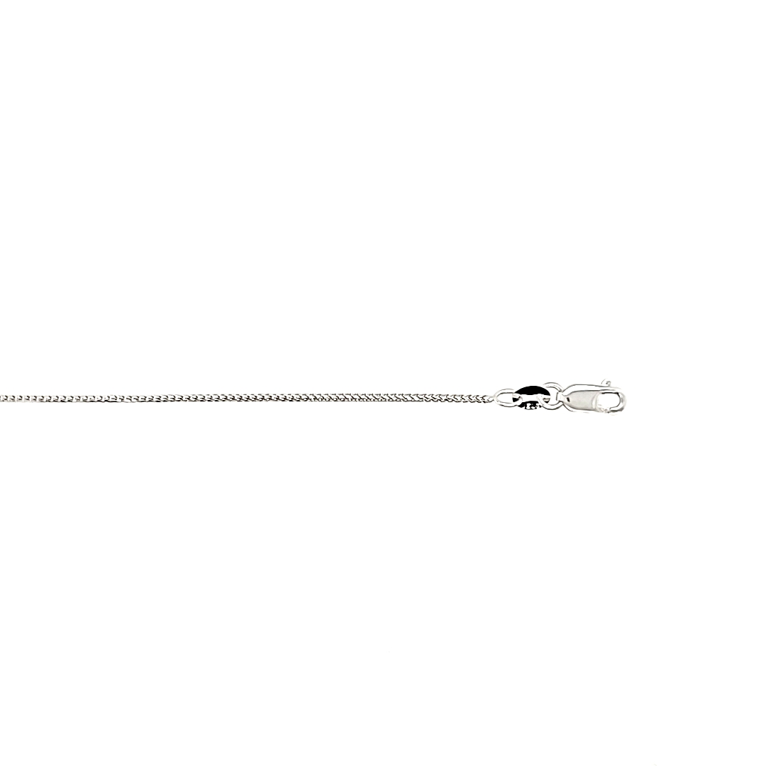 10K white gold 18″ Franco link chain with a lobster claw clasp.
