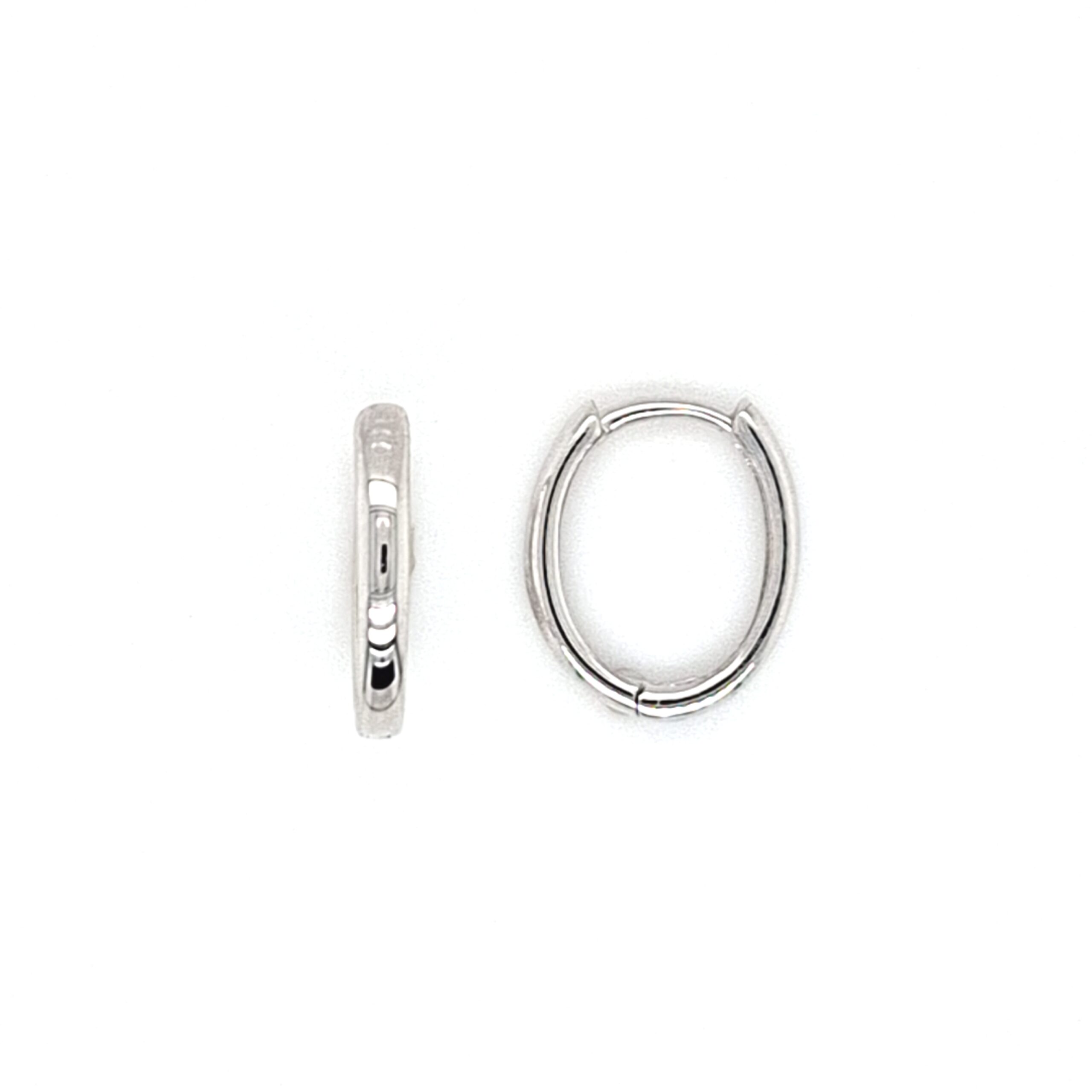 10K white gold high polish 11 x 13 x 2mm tube, oval huggie hoop earrings.