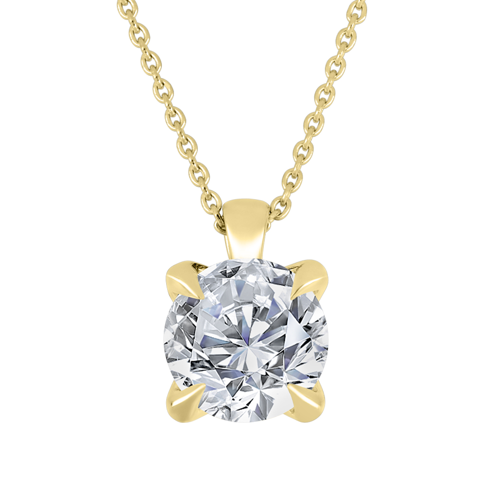 14K yellow gold, solitaire designer tiger claw pendant with a Round Brilliant cut Lab Grown Diamond at 2.00ct VVS clarity, F colour including an adjustable 16-18″ Rolo link chain.