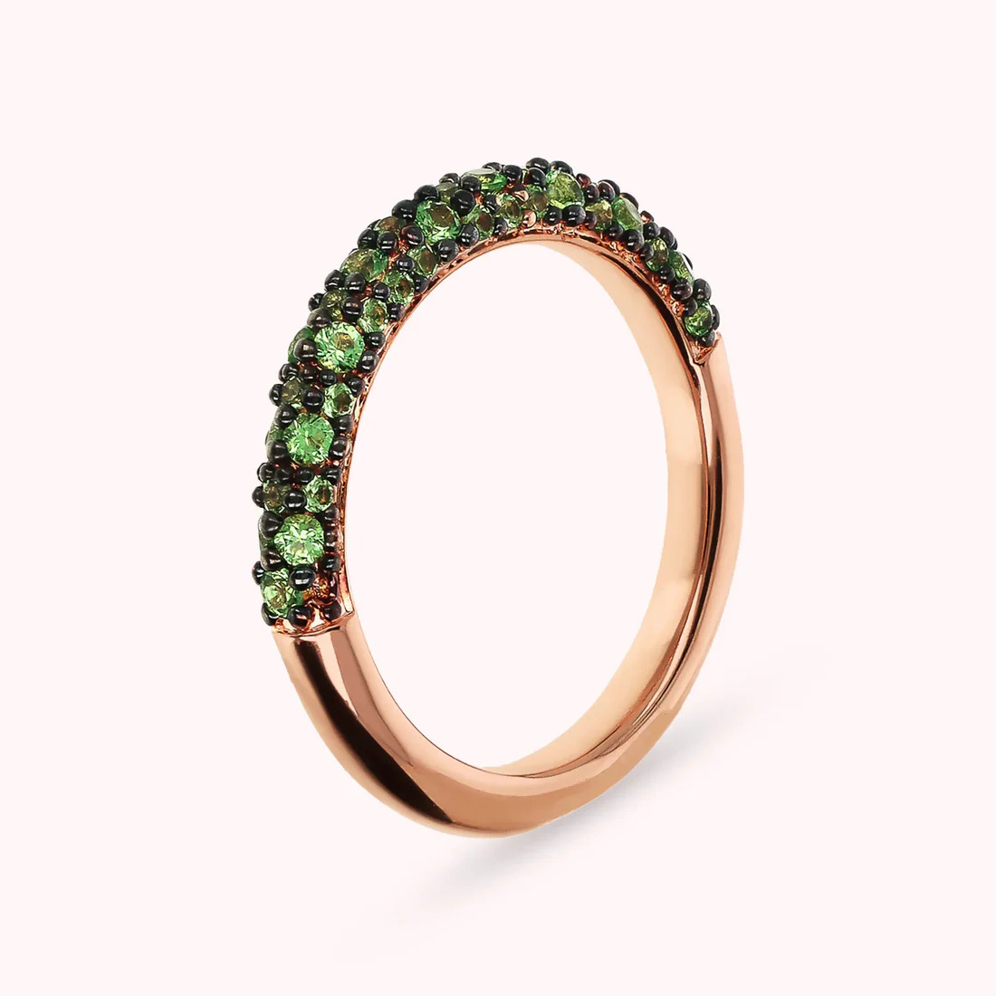 BRONZALLURE 18K rose gold plated over bronze band style ring with pave set light green cubic zirconias.