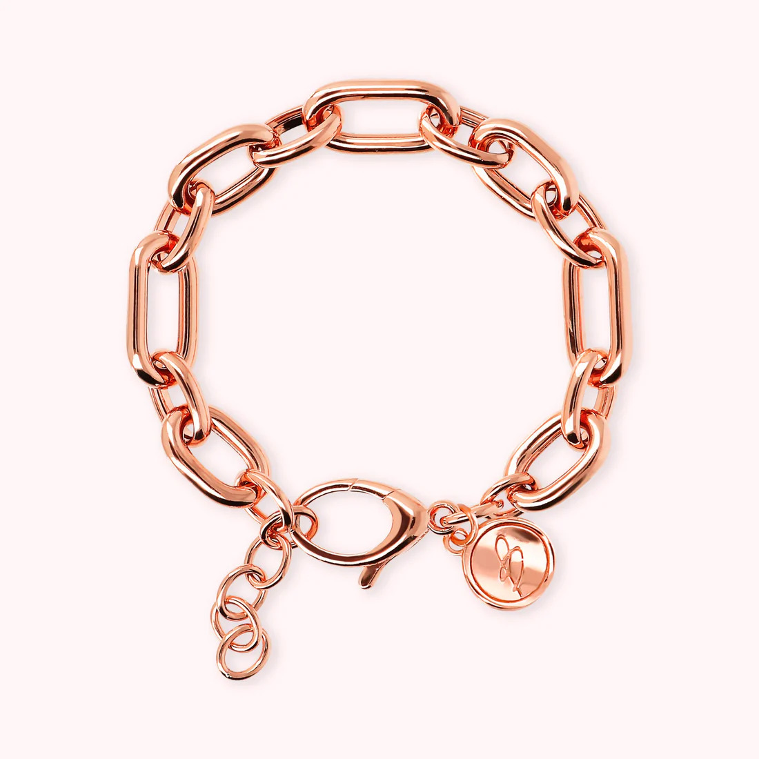 BRONZALLURE 18K rose gold plated over bronze alternate oval, paperclip link bracelet 7.5+1” Bracelet has a large, easy to use, designer trigger clasp.