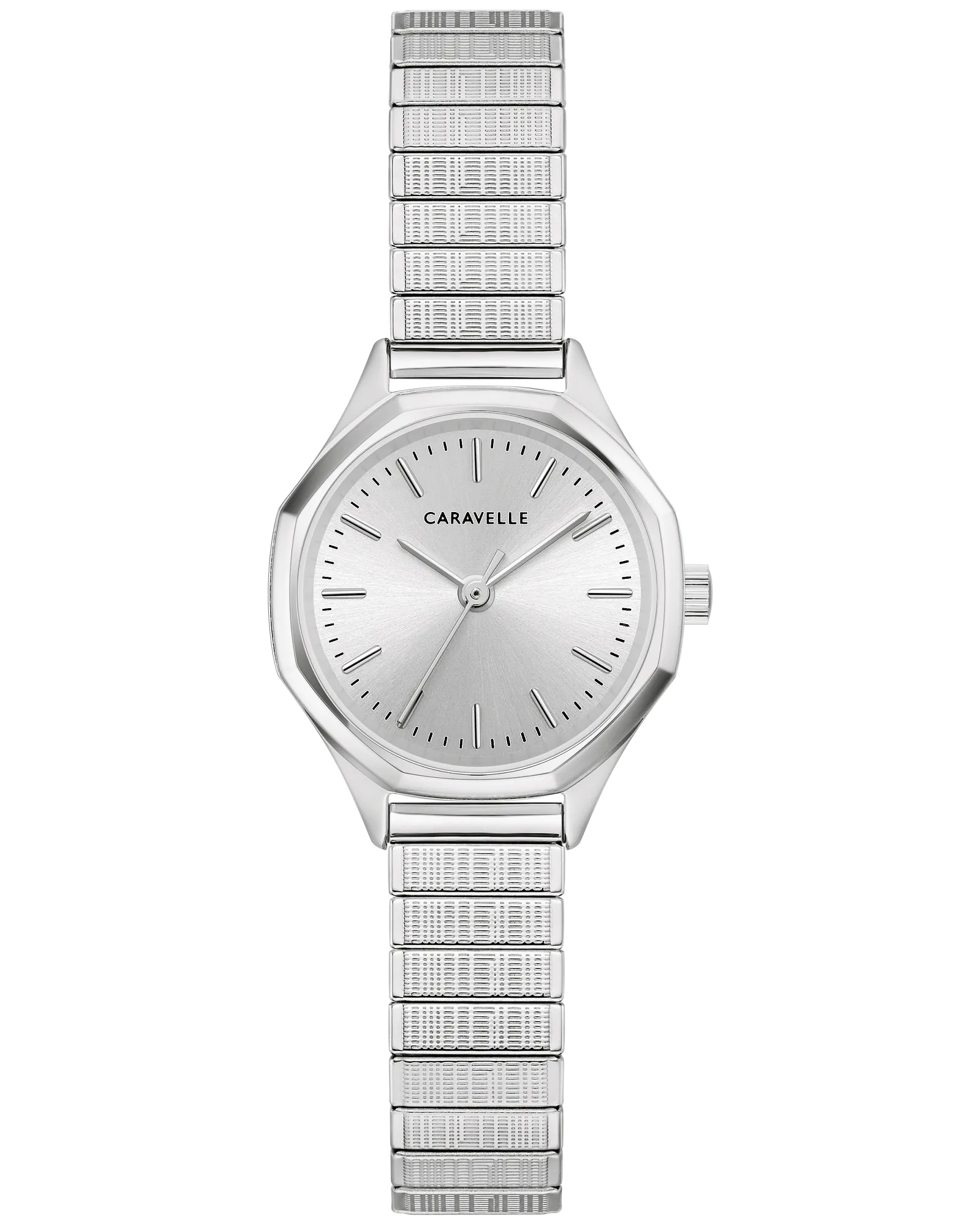 Balancing a vintage case design with subtle style, this petite Caravelle ladies’ timepiece is a charming companion to any outfit. A faceted polished stainless steel case is paired with an expansion band for exceptional comfort. The silver-white sunray dial plays with the light as polished hands display the time. A timeless design, this Caravelle ladies’ timepiece is an exquisite addition to every wardrobe.