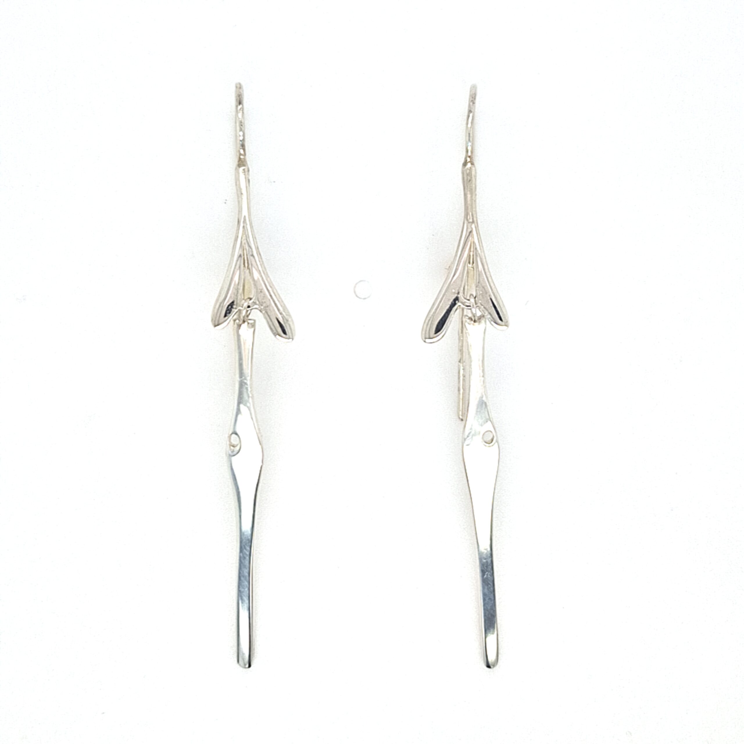 ESTATE sterling silver Birks, Esty Grossman designer, handmade, needlefish “Fish Drops” earrings.
