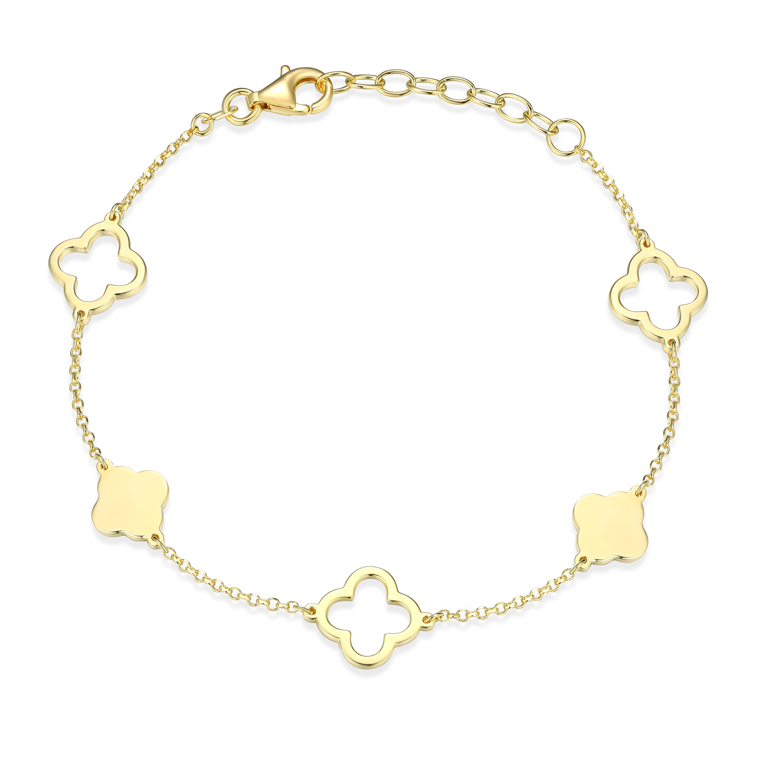 Sterling silver, 18K yellow gold plated REIGN open & solid clover station bracelet 6.5”+1” extension with trigger clasp.