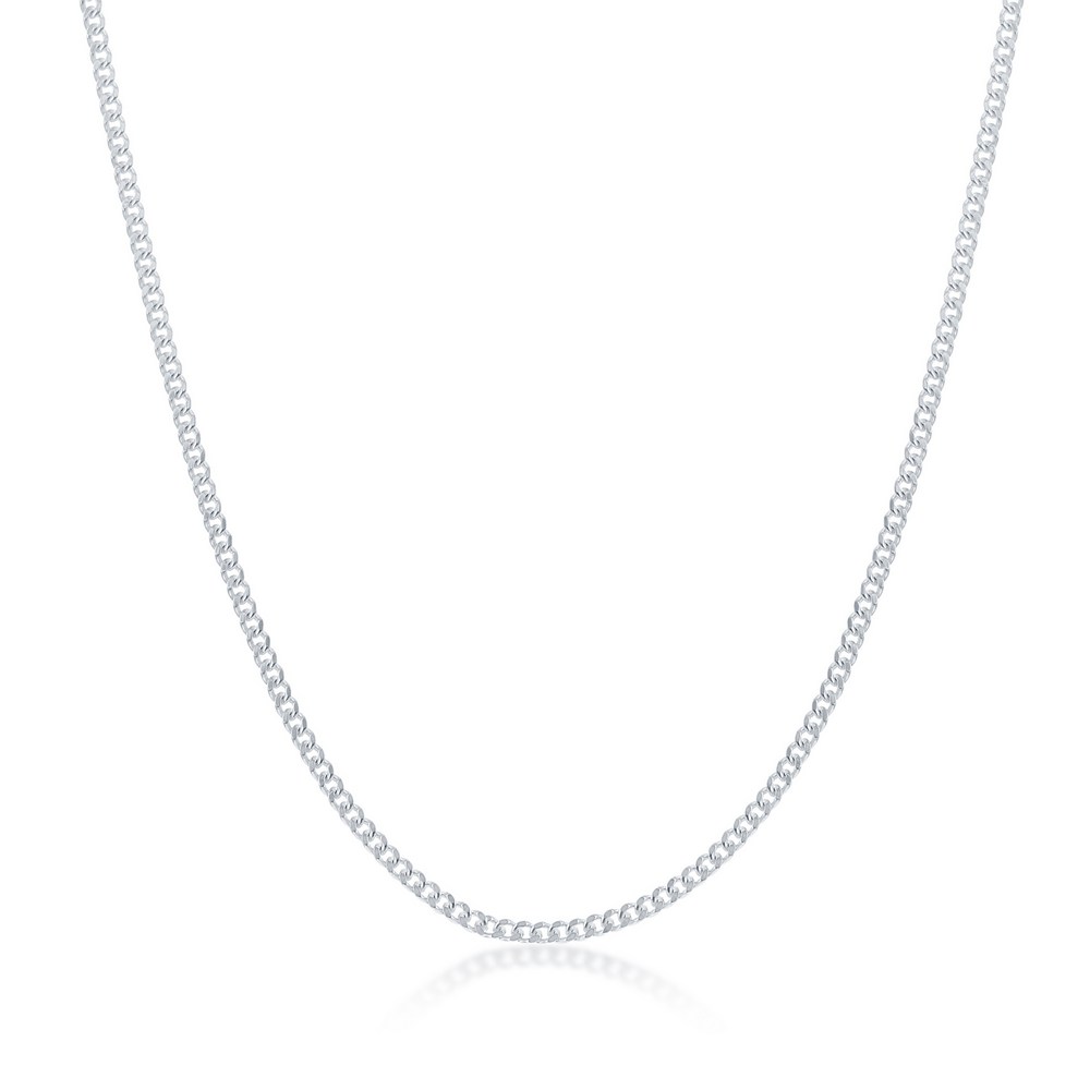 Sterling silver 16” Rhodium plated curb link chain with lobster clasp.