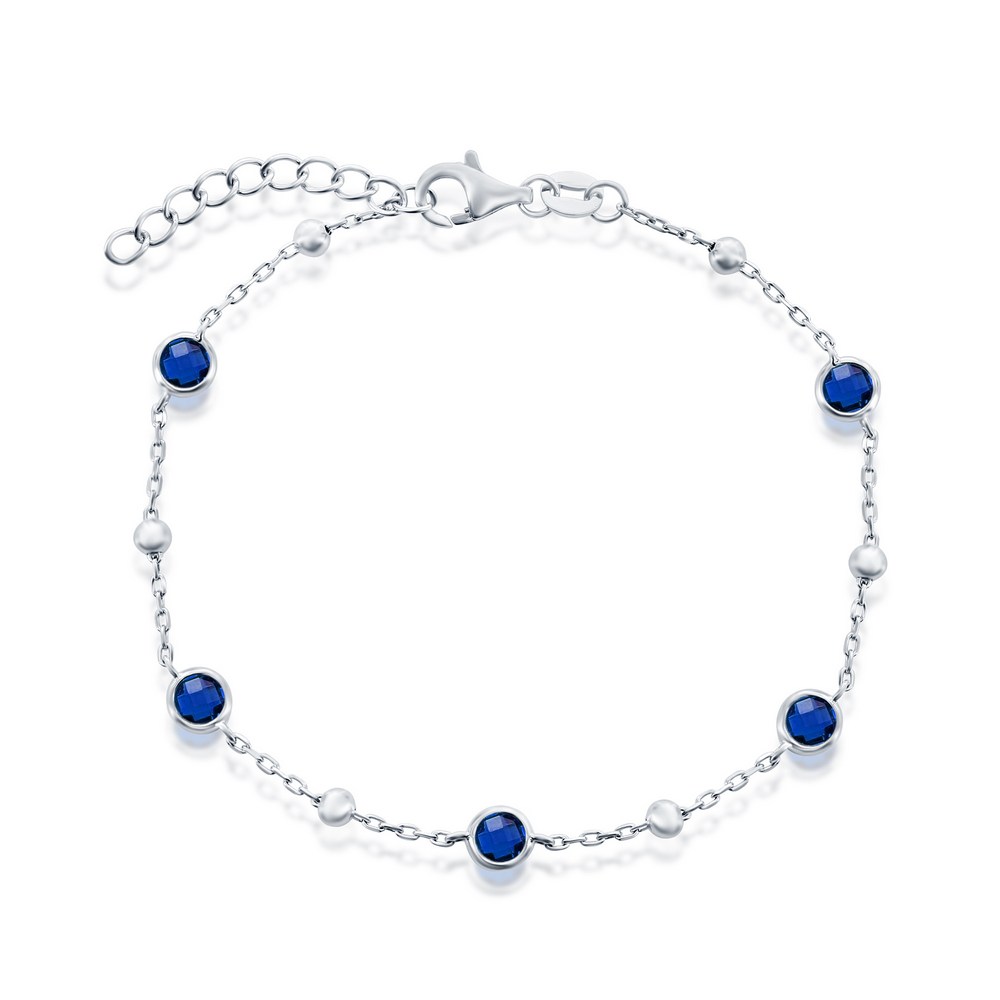 Sterling Silver Blue CZ Station Bracelet