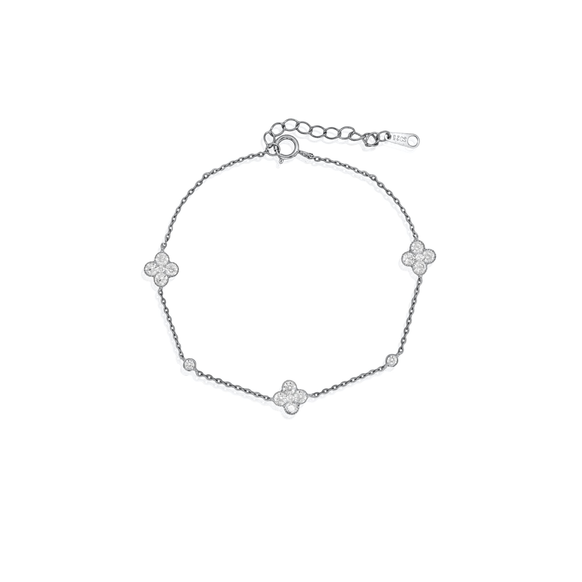 Sterling Silver Cubic Zirconia Clover Bracelet