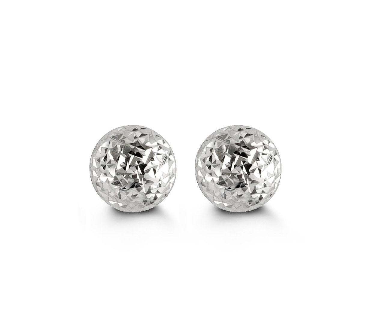 10K white gold 6mm diamond cut ball stud earrings with butterfly backs.